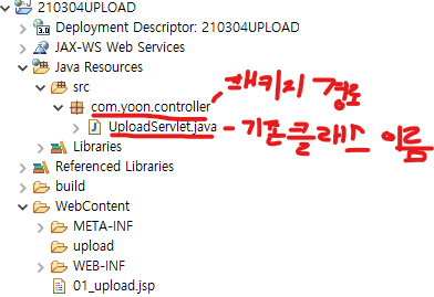 JSP에서 서블릿으로 전송을 하면 기존클래스 이름은 UploadServlet 이 아닌 url로 매핑된 이름으로 노출된다.