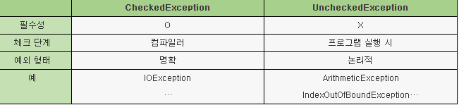 *예외처리를 하지 않아도 실행되는 경우(UncheckedException)