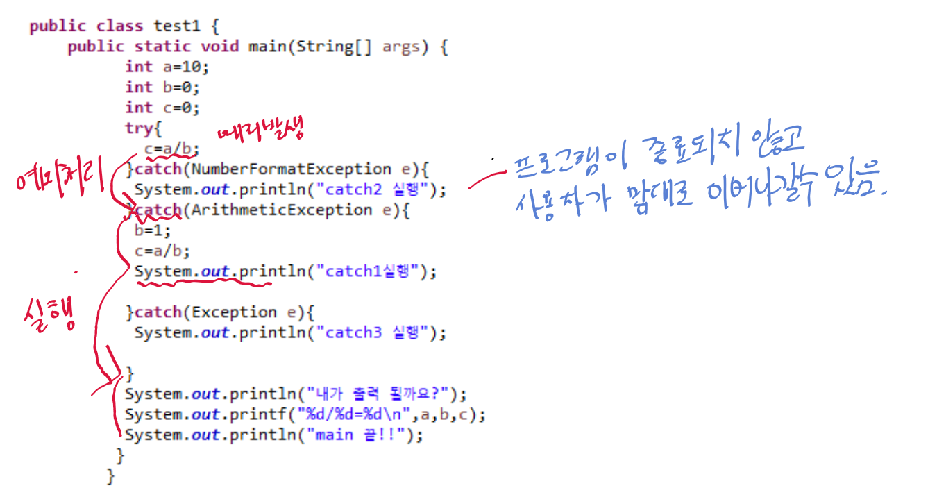 예외상황 처리가 수행된후 프로그램이 종료 된다