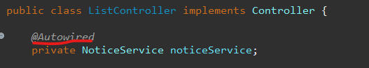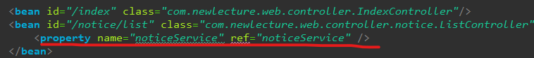 ListController 클래스 내에서 noticeService 클래스 를 쓰기 위해 xml에 주입이 설정된 상태이다.