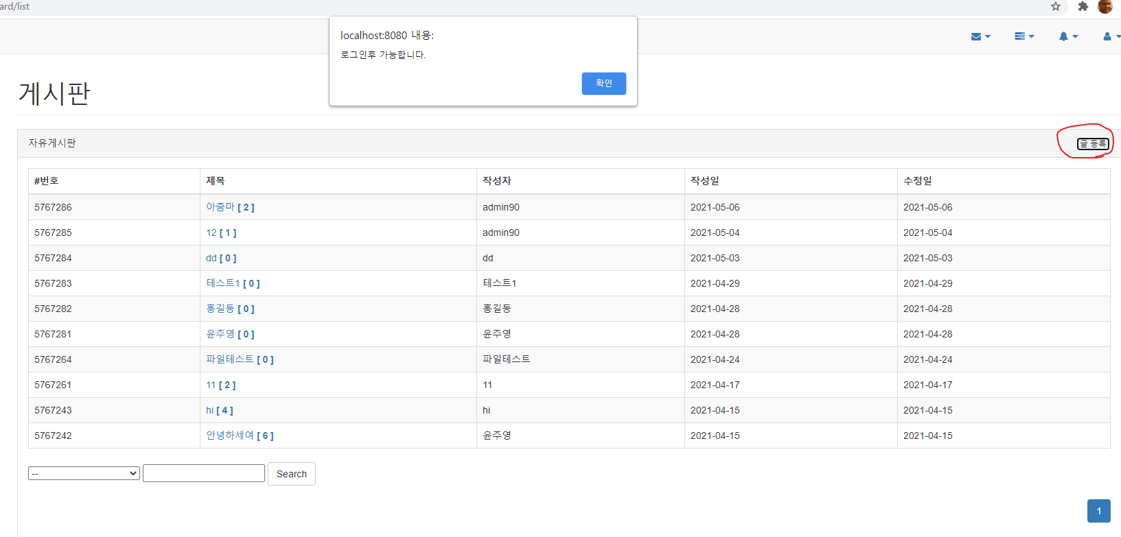 현재 로그인 없이 글 등록을 할수 없게 적용을 시켜두었다.