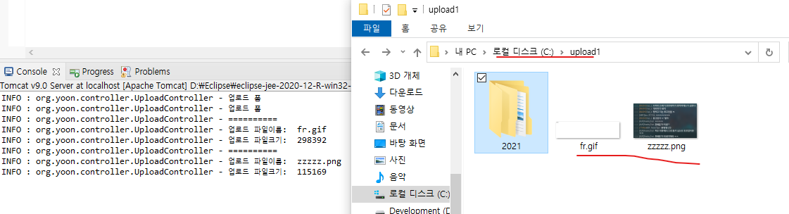 콘솔과 함께 파일이 서버에 저장됨을 확인 할 수 있다.