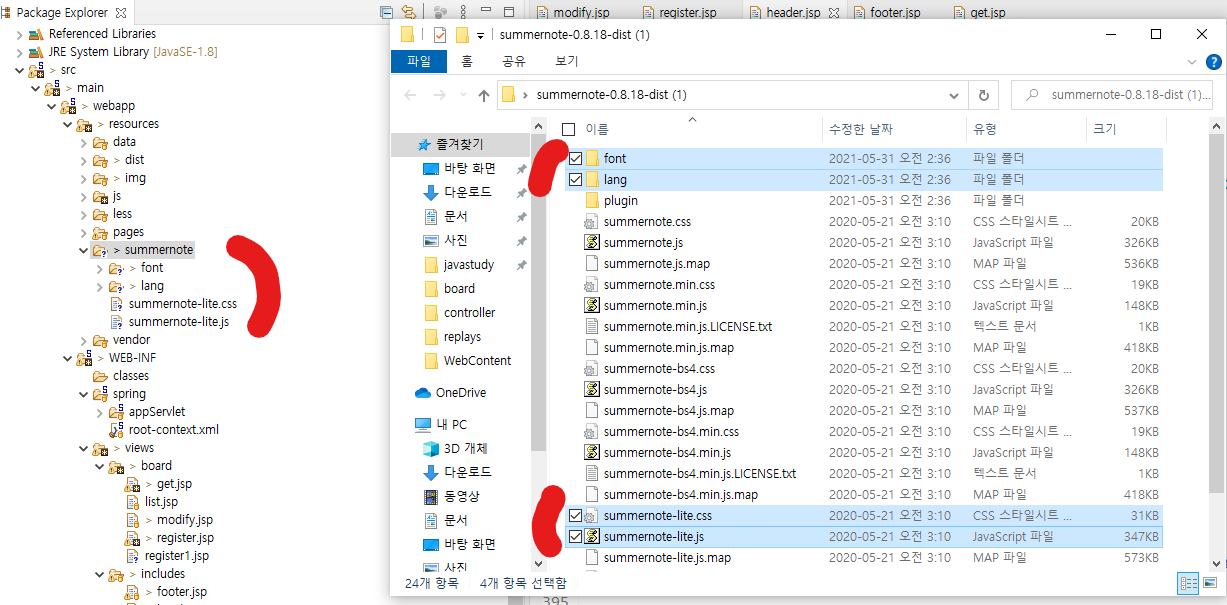 나는 resources 파일에 4개의 파일들을 위치 시켰다,