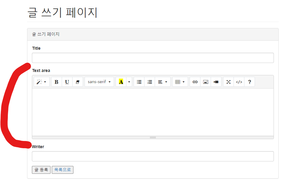 textarea 태그의 클래스에 "summernote" 를 지정한다.