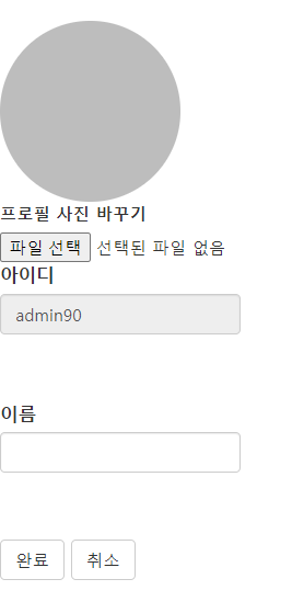 (수정완료버튼을 누르지 않고 파일만 변경해도 파일자체는 실제 서버에 업로드가 된다. 허나 db내에는 등록되지 않는다. 버튼을 눌렀을때만 유저 아이디에 대조되는 파일내용이 db내에 등록되고 쓸데없이 서버에 업로드된 파일들은 추후에 비교 트리거를 이용하여 db내에 파일과 서버에 업로드된 파일의 내용을 대조하여 일치하지 않을시 삭제해주는 트리거를 만들어 이를 해결할 것이다.)