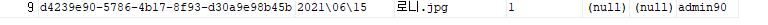 현재 admin90의 유저아이디로 파일테이블에 파일정보가 등록되어있다.