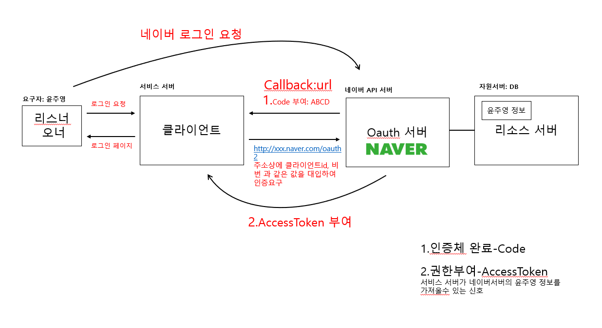 주소값이 정확하면 네이버 OAuth 서버는 유저정보를 가져올수있는 AccessToken을 부여한다.