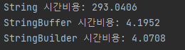 System.out.println("String 시간비용: " + elapsed1);
