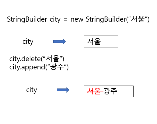 String 의 변수 city는 처음엔 "서울" 이라는 값을 바라보고 있다가