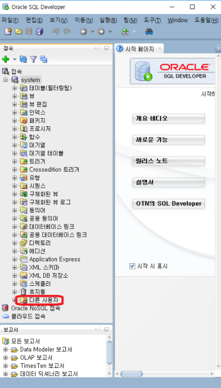 새로 고침후 다른 사용자를 확인하면 scott 계정이 활성화된것을 확인해볼수 있음