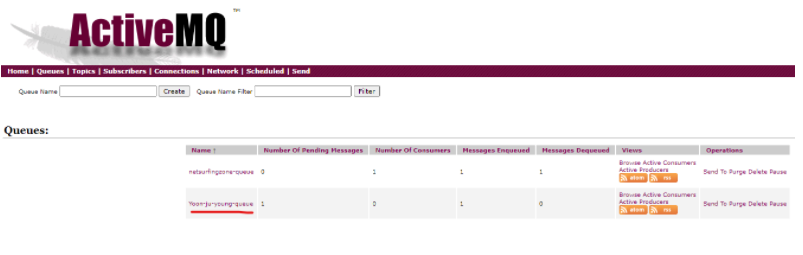해당 사이트로 접속하게 되고 해당 사이트에서 MQ를 모니터링 할 수 있는 것 같다.