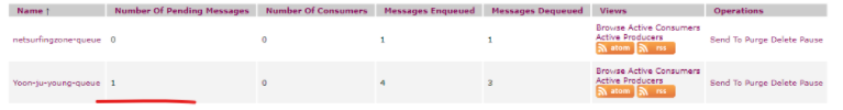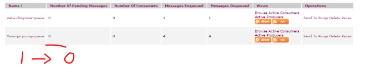 여기서 넣어주는 큐의 이름은 추후 통신 테스트 후 사이트 모니터에 등록됨을 확인할수 있다.