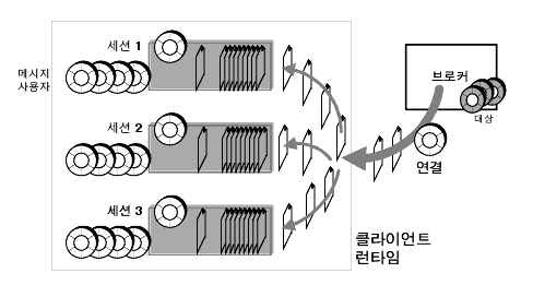 메시지를 보낼때, 받을때 모두 세션을 가지고 있으며