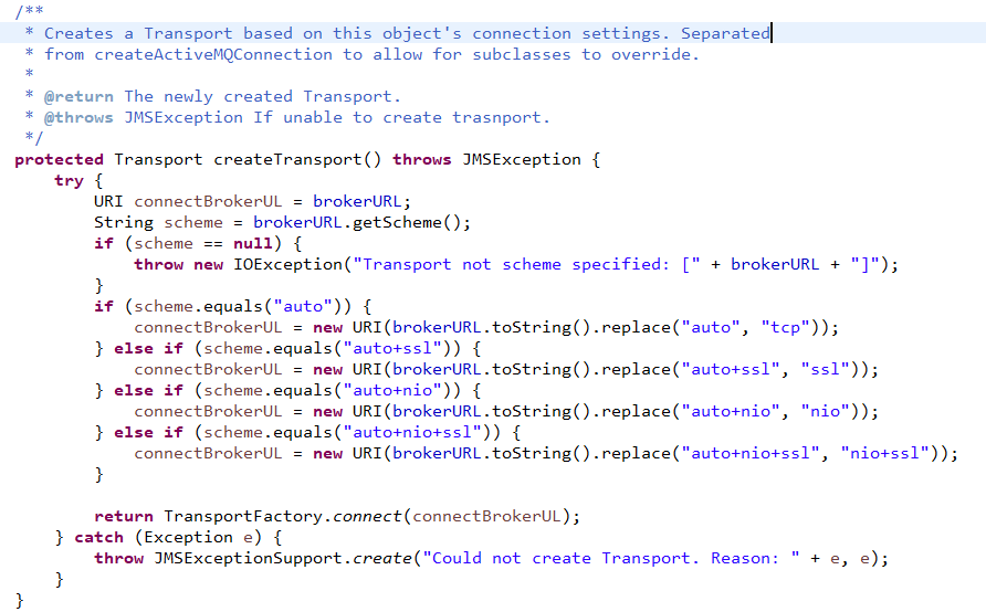 현재 ActiveMQConnectionFactory 안에 커넥션을 만들어주는 메서드 중 하나이다.