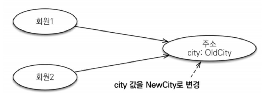값 타입은 식별자라는 개념이 없으므로 값을 변경시 DB에 저장된 원본 데이터를 찾기 어렵다.
