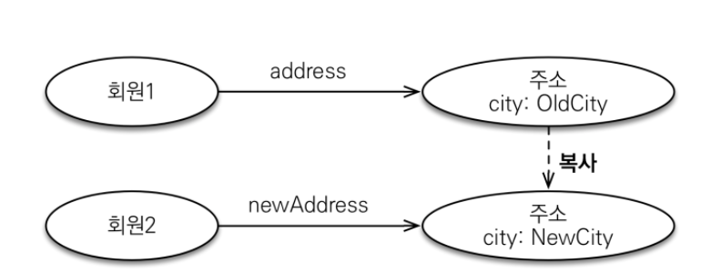 값 타입의 실제 인스턴스인 값을 공유하는 것은 위험하기에 값(인스턴스)를 복사해서 사용해야한다.
