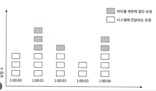 윈도 경계 부근에서 일시적으로 많은 트래픽이 몰려드는 경우, 기대했던 처리 한도 보다더 많은 양의 요청을 처리하게 된다.