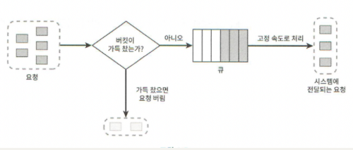 요청 처리율이 고정되어 있는것이 차이점, 보통FIFO 큐로 구현