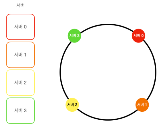 서버가 추가되거나 제거시에는 키는 시계 방향 기준으로 인접한 서버에 재배치 되어야 한다.