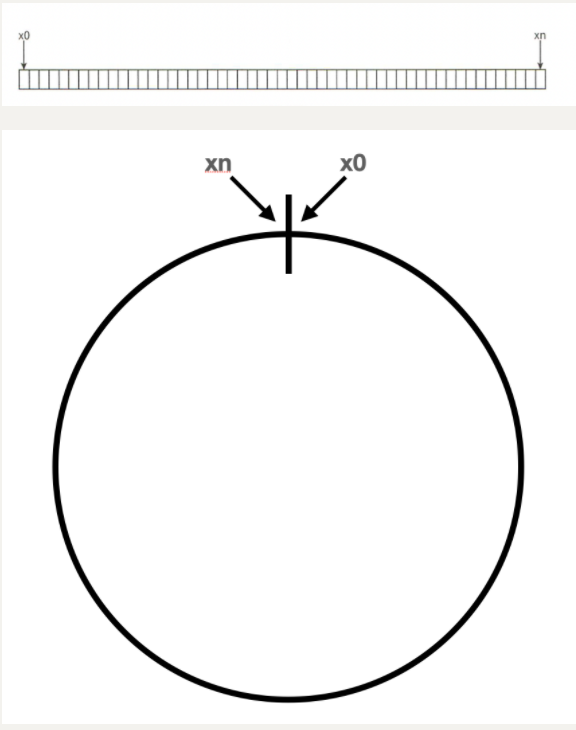 위의 해시 공간을 구부려 놓으면 원 형태의 해시 링이 만들어진다.