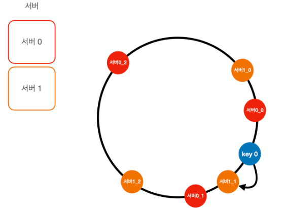 - 서버 0은 서버 0_0, 0_1, 0_2 3가지의 가상 노드를 갖고 있으며