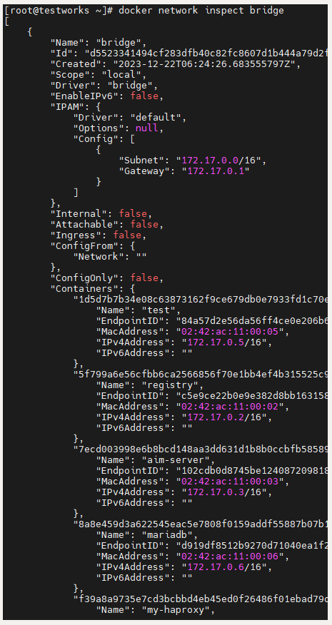 brigde의 할당된 아이피 대역대를 확인해보면 172.17.0.x 이다