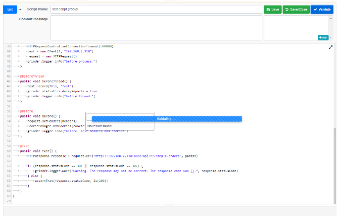 Create 한 다음 Validate 로 스크립트 검증 후 Save