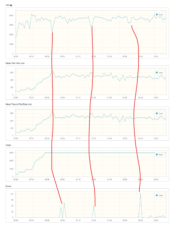- TPS 자체는 5천 이상으로 기존 유저 수 3000을 웃도는 것을 보면 문제 없음(TPS 높으면 좋음)