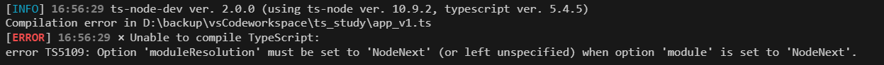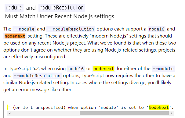 error TS5109: Option 'moduleResolution' must be set to 'NodeNext' (or left unspecified) when option 'module' is set to 'NodeNext'.
