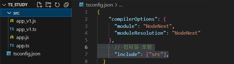 위 문서를 토대로 tsconfig.json을 만들자 tsconfig.json는 제일 root 경로에 만들고 나머지 코드들은 src 폴더를 생성하여 안으로 이동시켰다.