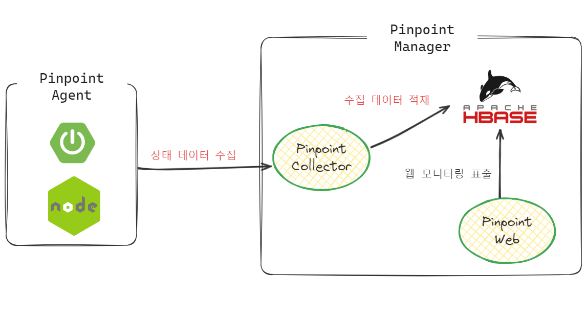Agent는 애플리케이션의 모니터링을 위한 수집 정보를 Pinpoint Collector로 전달한다.