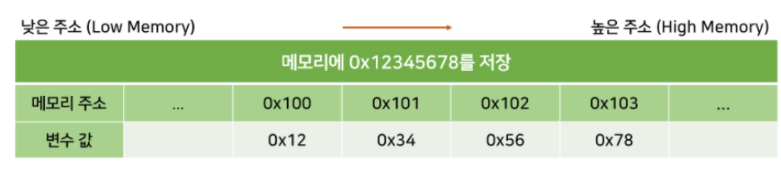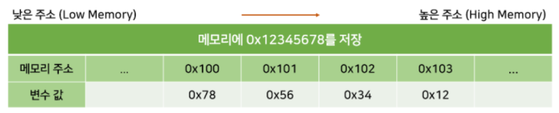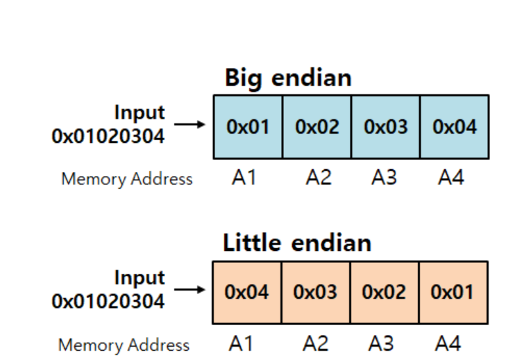 컴퓨터 시스템에서 데이터의 바이트 순서를 저장하는 방식이며, 빅엔디안, 리틀 엔디안 2가지 방식이 존재한다.