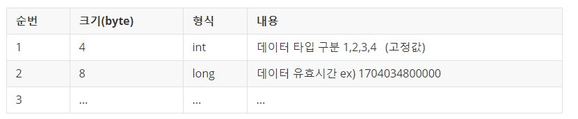 JAVA에서는 데이터 타입 구분자를 4로 보낼것이며 이를 00 00 00 04로 저장하여 데이터를 송신한다.