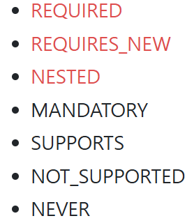 트랜잭션 전파 속성에는 7가지 속성이 존재한다. 그중 주로 사용하는 3가지에 대해서만 설명한다.