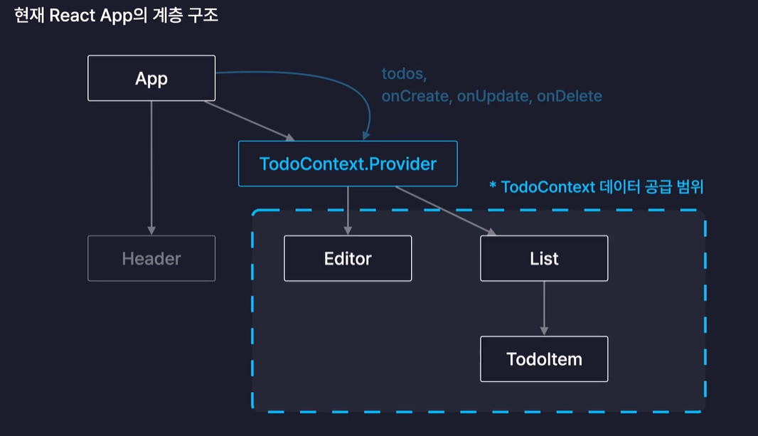 TodoContext,Provider 도 결국 App 컴포넌트의 자식이다.