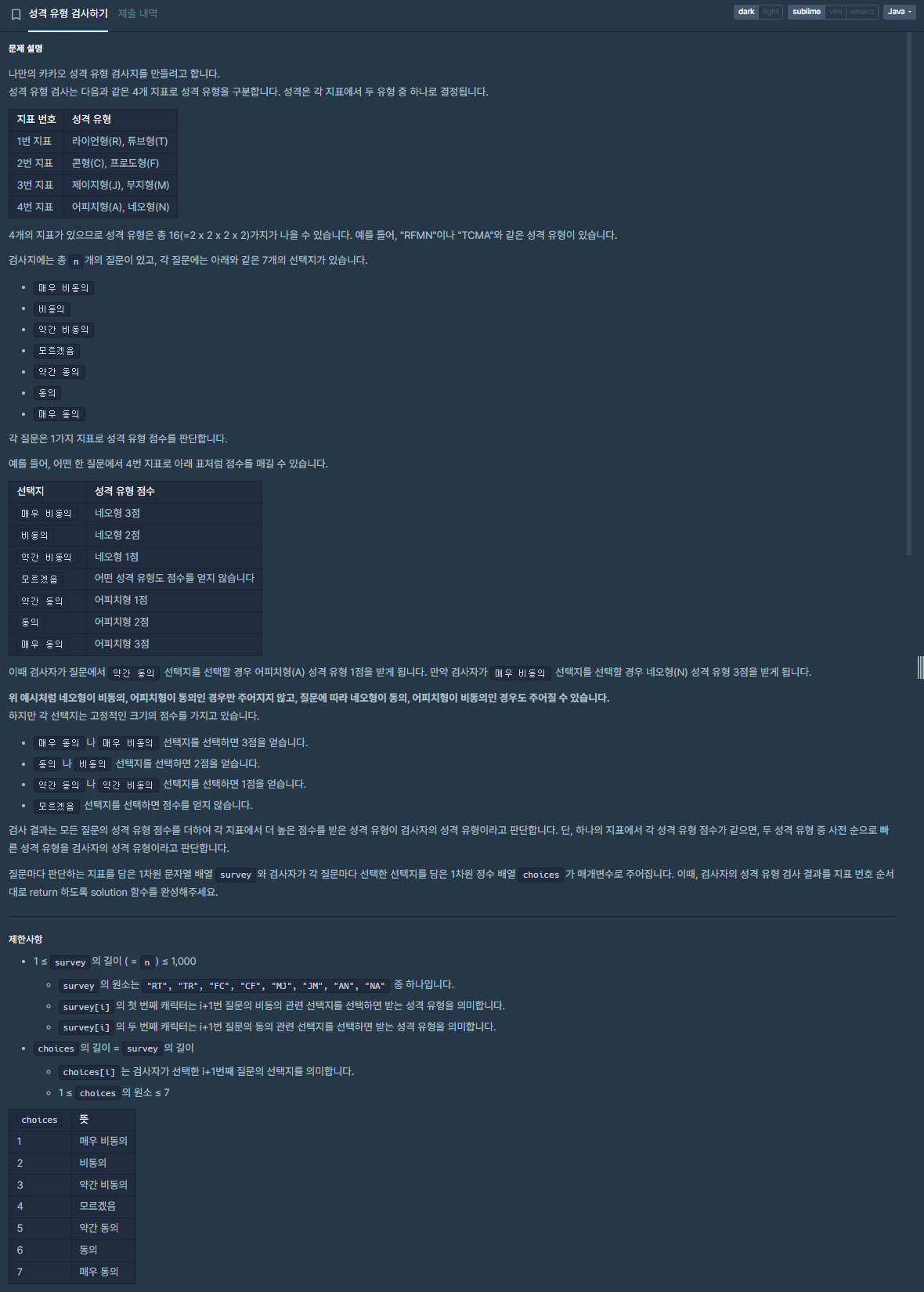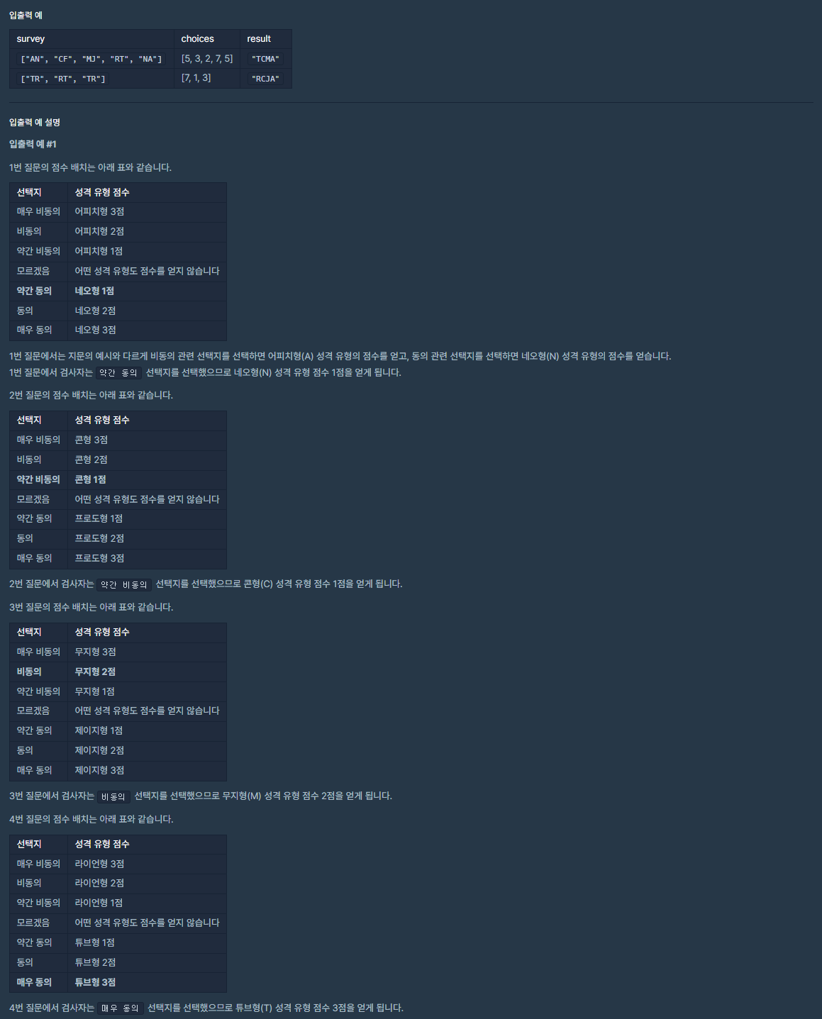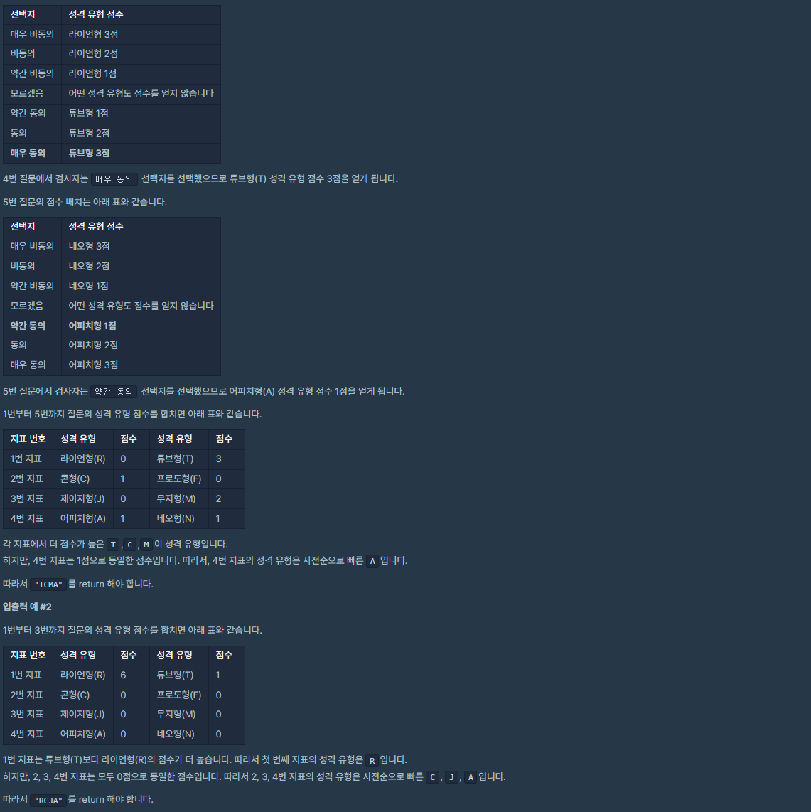 [프로그래머스] Lev 2. 성격 유형 검사하기