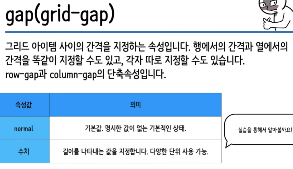 gap: 10px 20px;/* 2개일 경우 [행 사이 간격], [열 사이 간격]*/