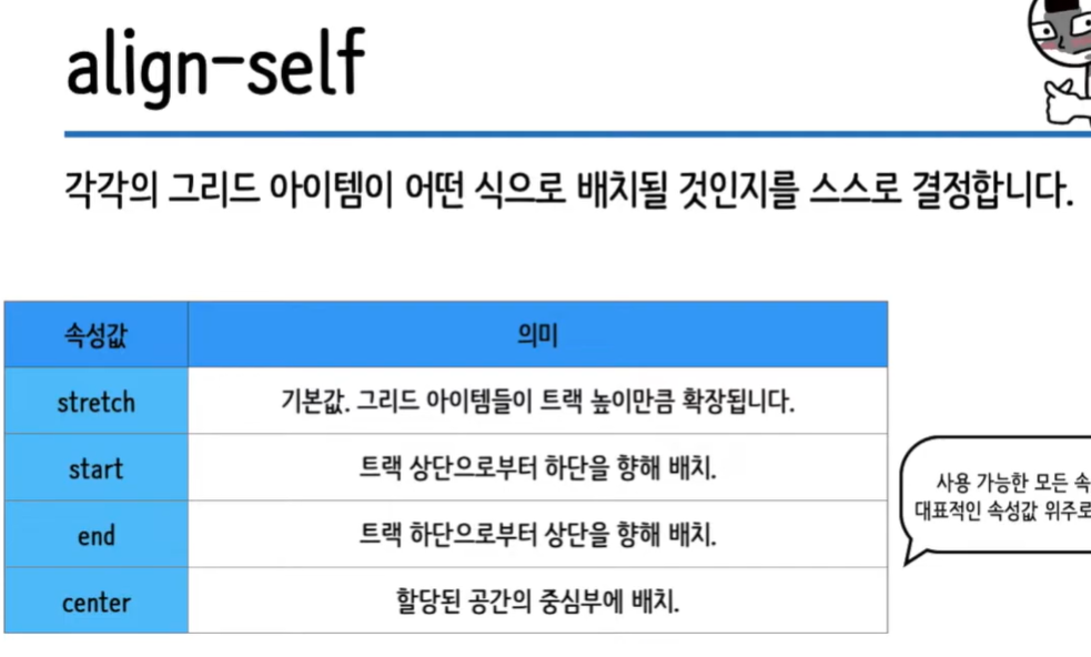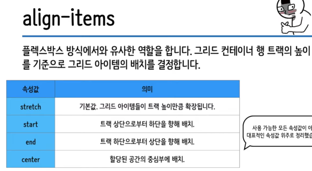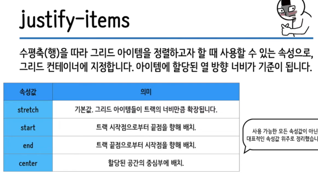 grid-template-columns: 100px 1fr; /* 첫번째열은 100px, 두번째열은 나머지 여백공간을 가득 채운다. */