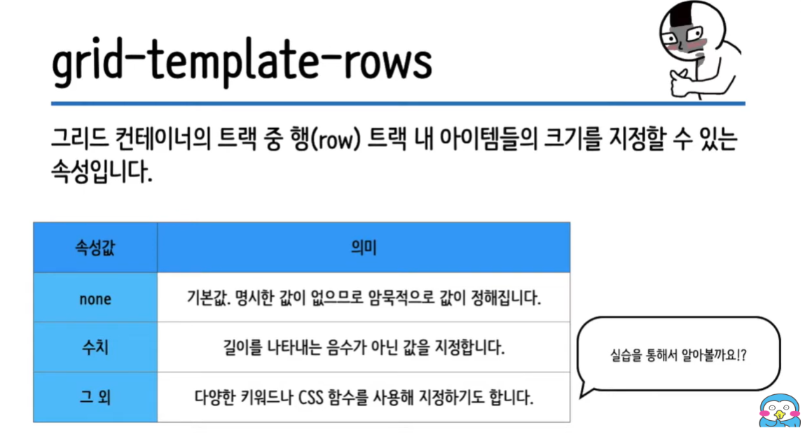 grid-template-rows: 200px; /* 첫번째 행만 200px이다. */