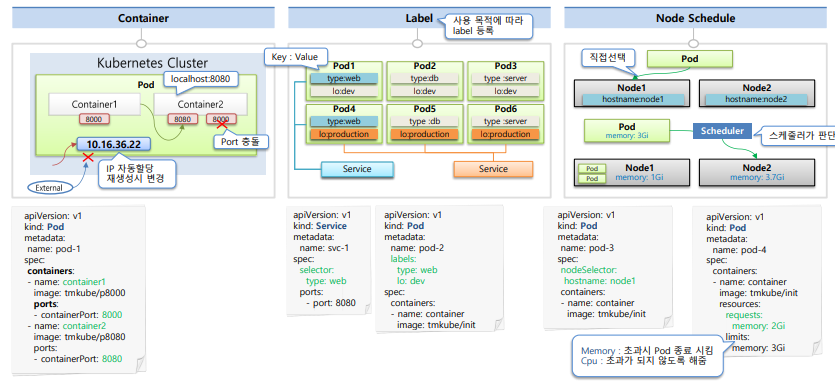 - Pod의 아이피는 Pod가 on/off 할때마다 변하지만 Service는 변하지 않는다.