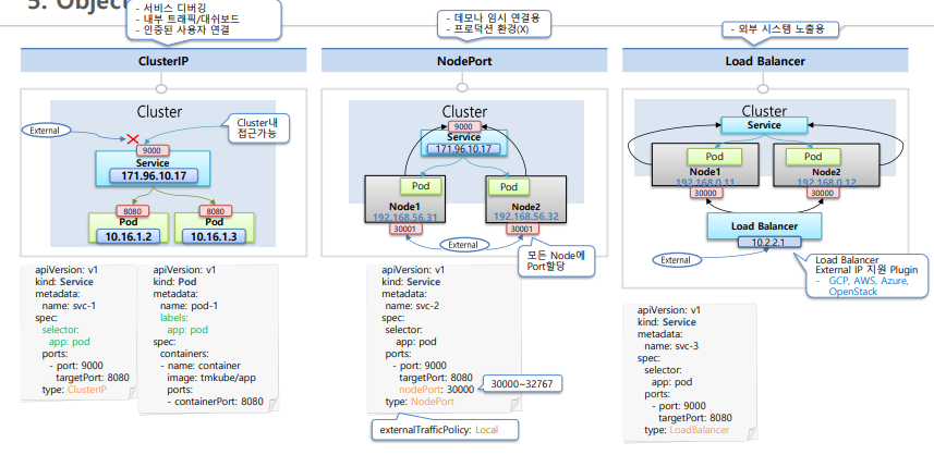 - 주 사용처: 내부망 연결, 데모나 임시 연결용, 내부 환경에서 시스템 개발을 하다가 외부의 간단한 데모를 보여줄때 종종 네트워크 중계기에 포트포워딩을 해서 외부에서 내부시스템에 연결할때, 이럴때 NodePort를 잠시 뚫어두고 사용한다.