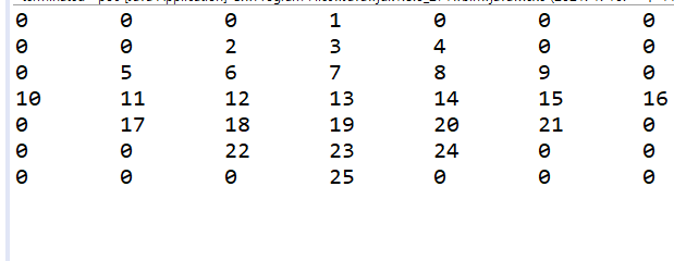 출력을 a[j][i]로 바꿔 출력할시 첫 출력위치가 (3.0) 시작하기 때문에 10의 위치에서 1부터 출력하기 됨으로