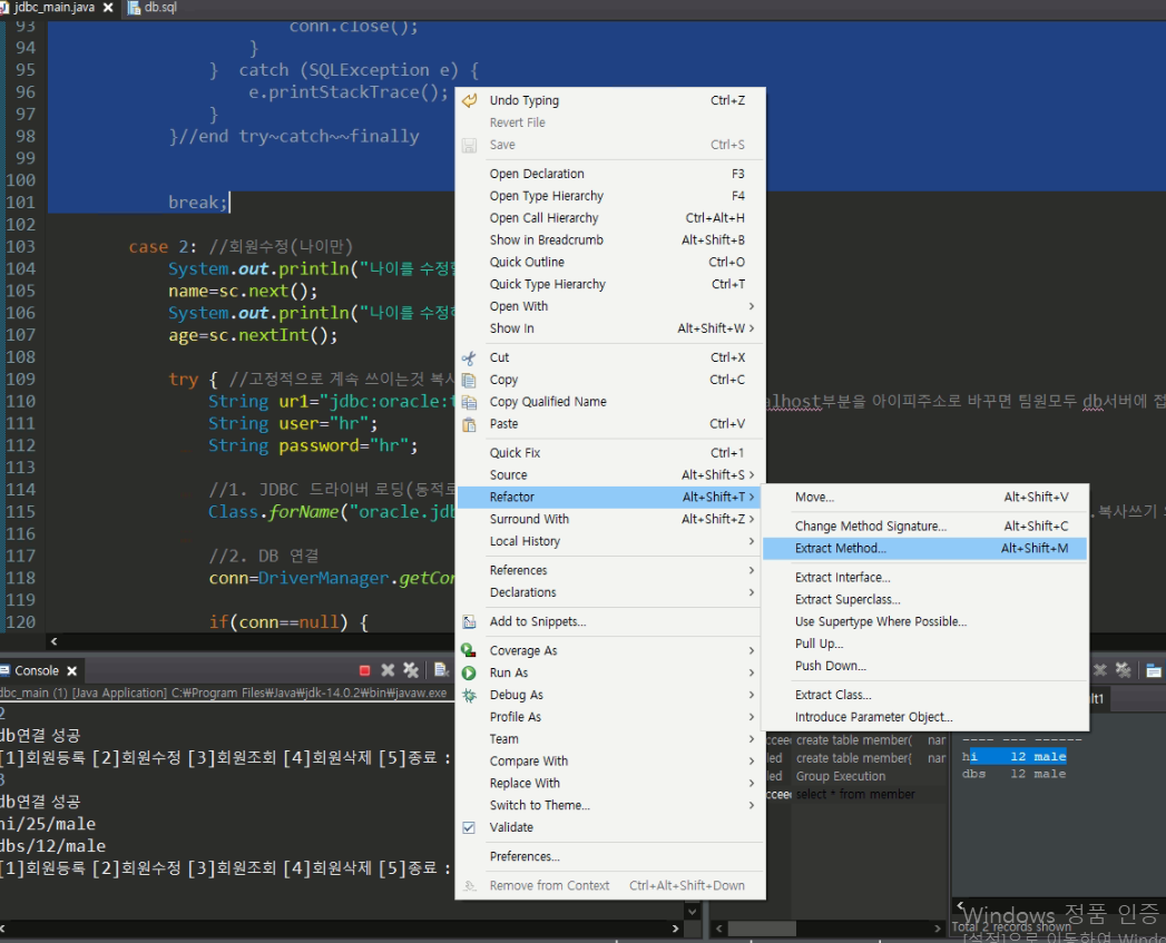 String ur1="jdbc:oracle:thin:@localhost:1521:xe"; //localhost부분을 아이피주소로 바꾸면 팀원모두 db서버에 접근 가능
