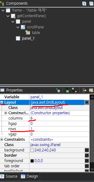 속성창 가서 row col 수정