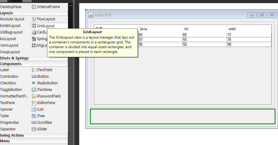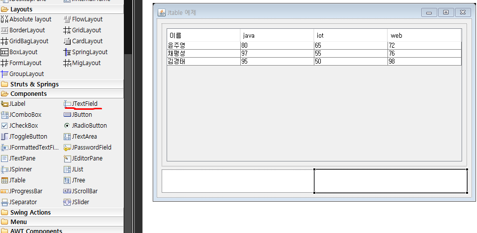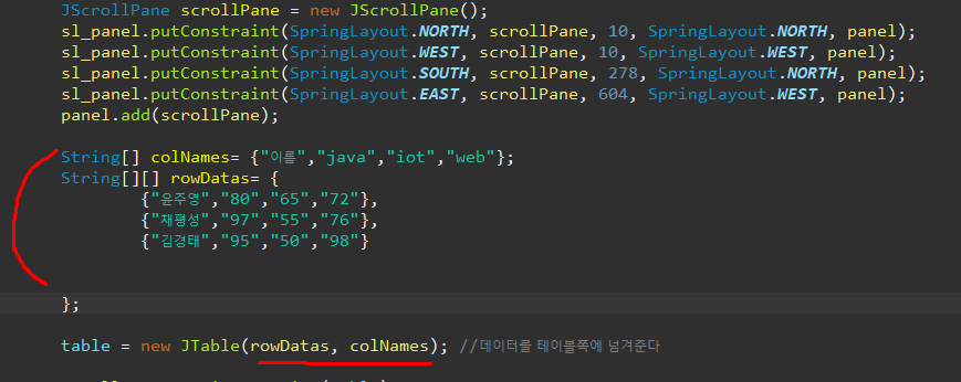 String[] colNames = {"이름","Java", "IOT", "Web"};