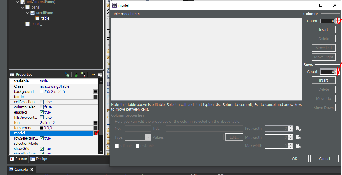table=new JTable(model);