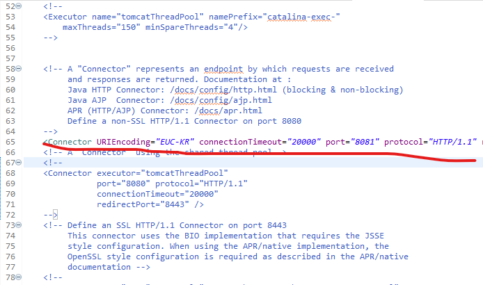 URIEncoding="EUC-KR"